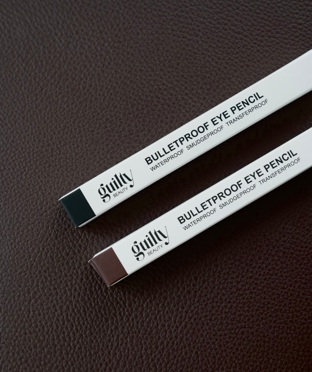 Lápis de olhos Bulletproof na cor castanho ou preto. São à prova de água, à prova de borrão e de transferência. Até 16 horas na pálpebra superior e 8 horas na linha de água. Desliza facilmente e pode ser aplicado tanto no exterior, como na linha das pestanas. Para afiar, use uma afiadeira apropriada para cosméticos, como por exemplo: Afiadeira Mehron ou Afiadeira MKATL. Para melhores resultados antes da aplicação do lápis coloque uma camada fina de Pó. Testado dermatologicamente e oftalmologicamente.